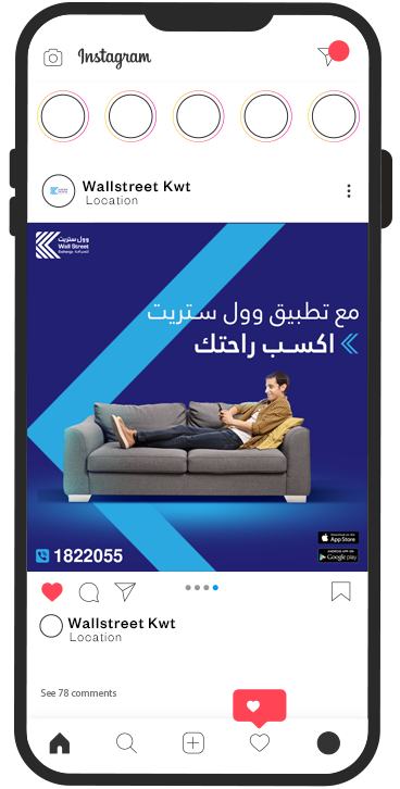 Wall Street Exchange is one of the leading companies based in Kuwait in the field of banking services, financial transfers, money exchange and regulation. It offers currency exchange and money transfer services which not only satisfy their clients but exceed their limit of expectations. Our job was to work on their social media platforms, develop their website and produce short video that pushes their target audience to download Wall Street’s app and use it.