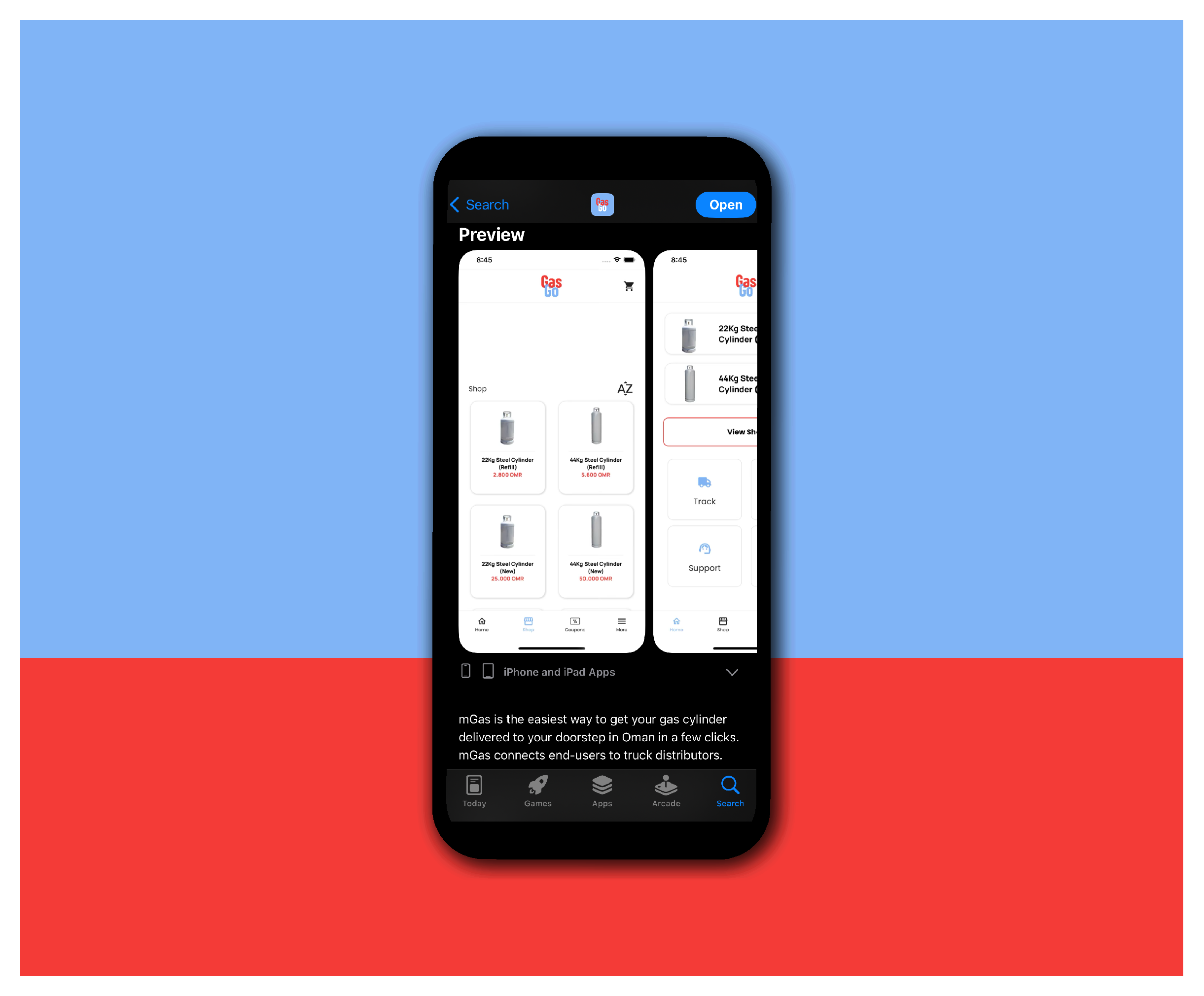 GasGo is a user-friendly mobile application that revolutionizes the way gas is delivered to homes. Developed by Muscat Gas Company, GasGo offers a convenient and secure platform for customers to order gas directly to their doorstep. Our job was to create GasGo full concept starting from the name, logo, and application design.