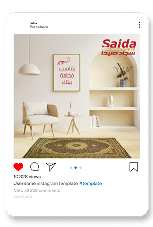 Saida Carpets founded in Syria in 1994 and has become number one carpet manufacturer in the market. Its main goal is letting customers experience the luxury of high quality products at an affordable price. Our job was to work on a 360 campaign to increase awareness, promote Saida and encourage customers to visit and buy Saida’s carpets.