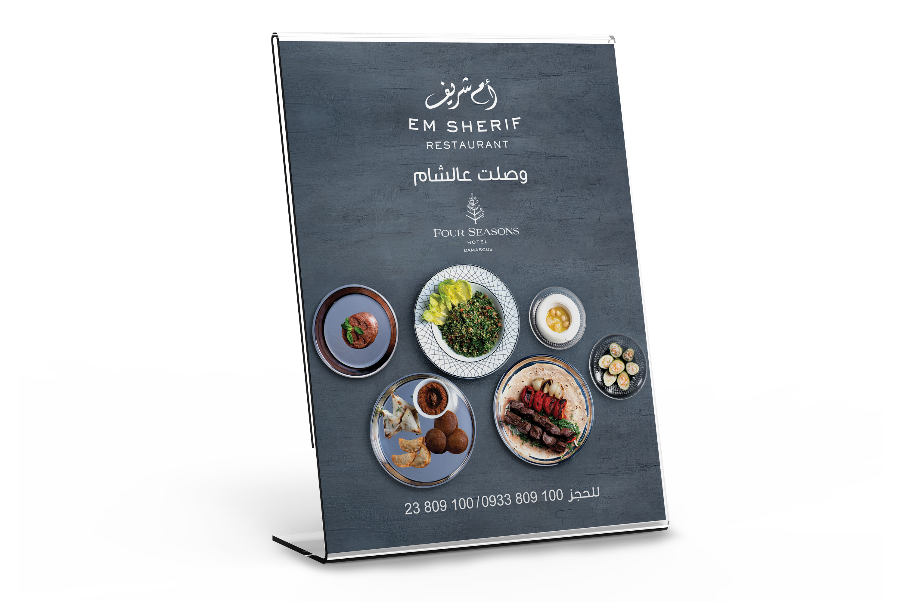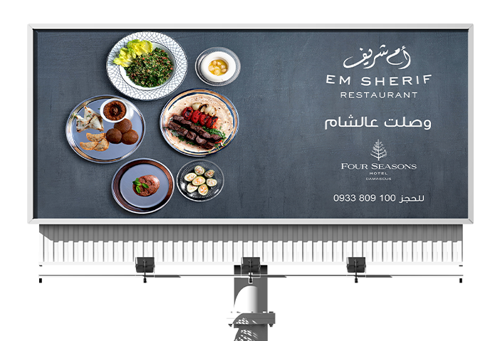 Em Sherif is a distinguished fine-dining Oriental restaurant that offers unique, authentic Oriental cuisine which brings back forgotten traditional flavors, providing its guests with an unsurpassed first-class dining experience. Em Sherif approached us for the opening of their new branch in Damascus. Our job was to launch Em Sharif in Damascus. We worked on an outdoor campaign starting with a teaser using the phrase "نورت الشام" that Syrian use when welcoming new guests along with Em Sharif’s iconic plates. Followed by the reveler design that revealed that Em Sharif arrived to Damascus revealing about their famous dishes. We also worked on their stationary and menu design